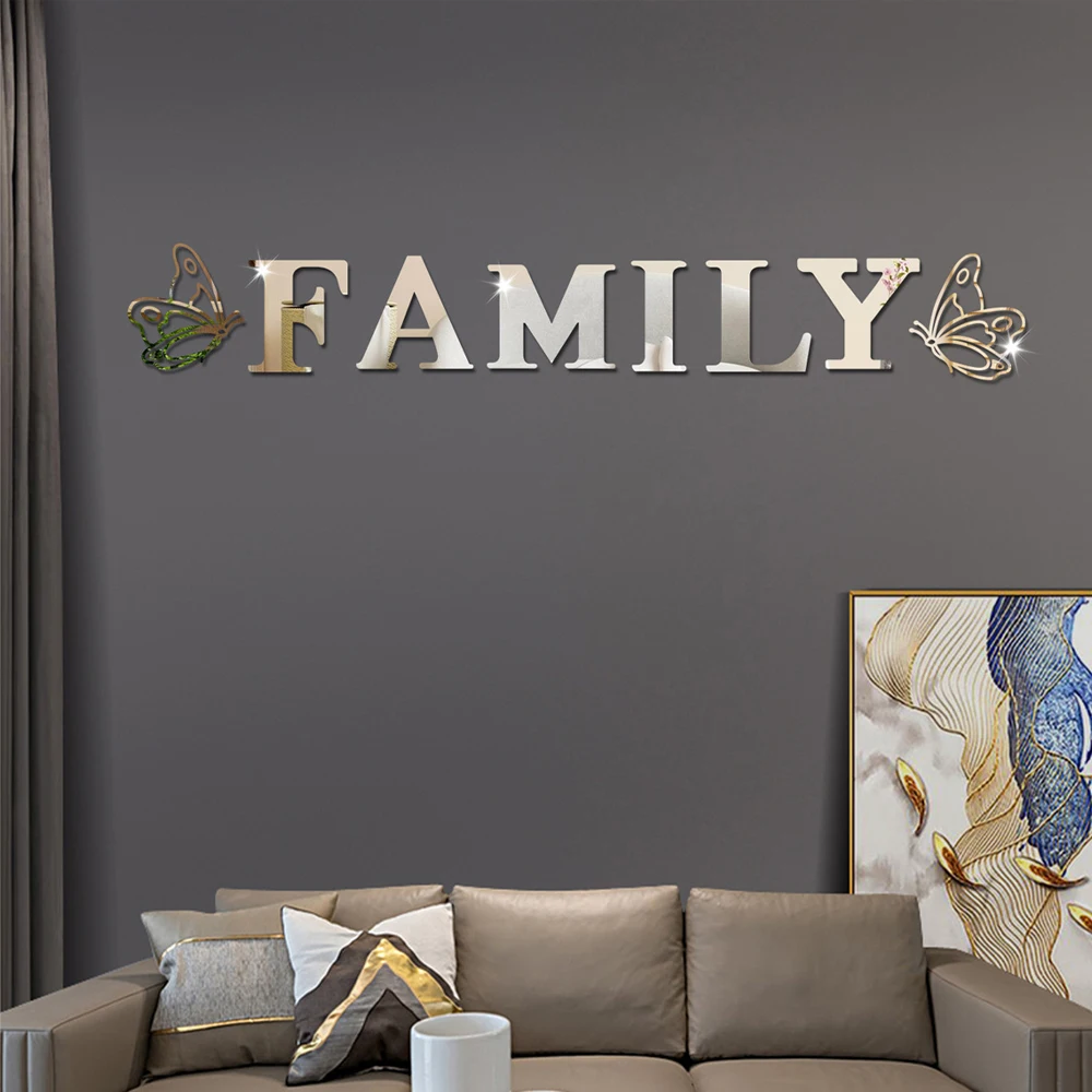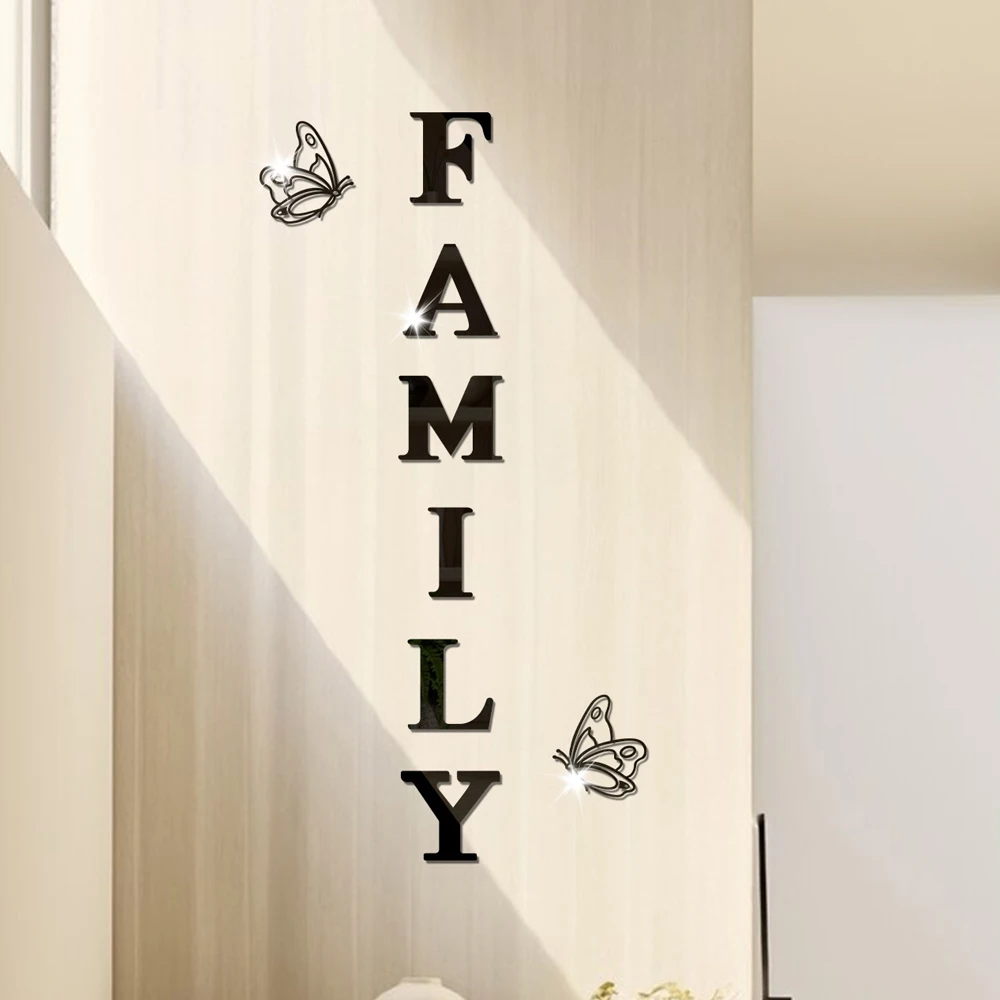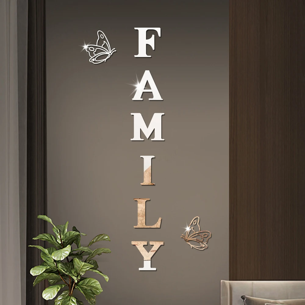 | 3D Mirror Wall Stickers | Two butterflies English Letters Family |